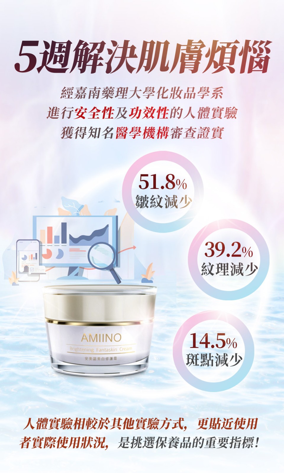 7分鐘前【安美諾 美白修護霜】 一瓶多效 美白淡斑修護保濕緊緻毛孔延緩肌膚老化 經過人體實驗,醫學機構證實,5週有感! - 美白修護霜1入 送珍珠潤澤面膜 1片
