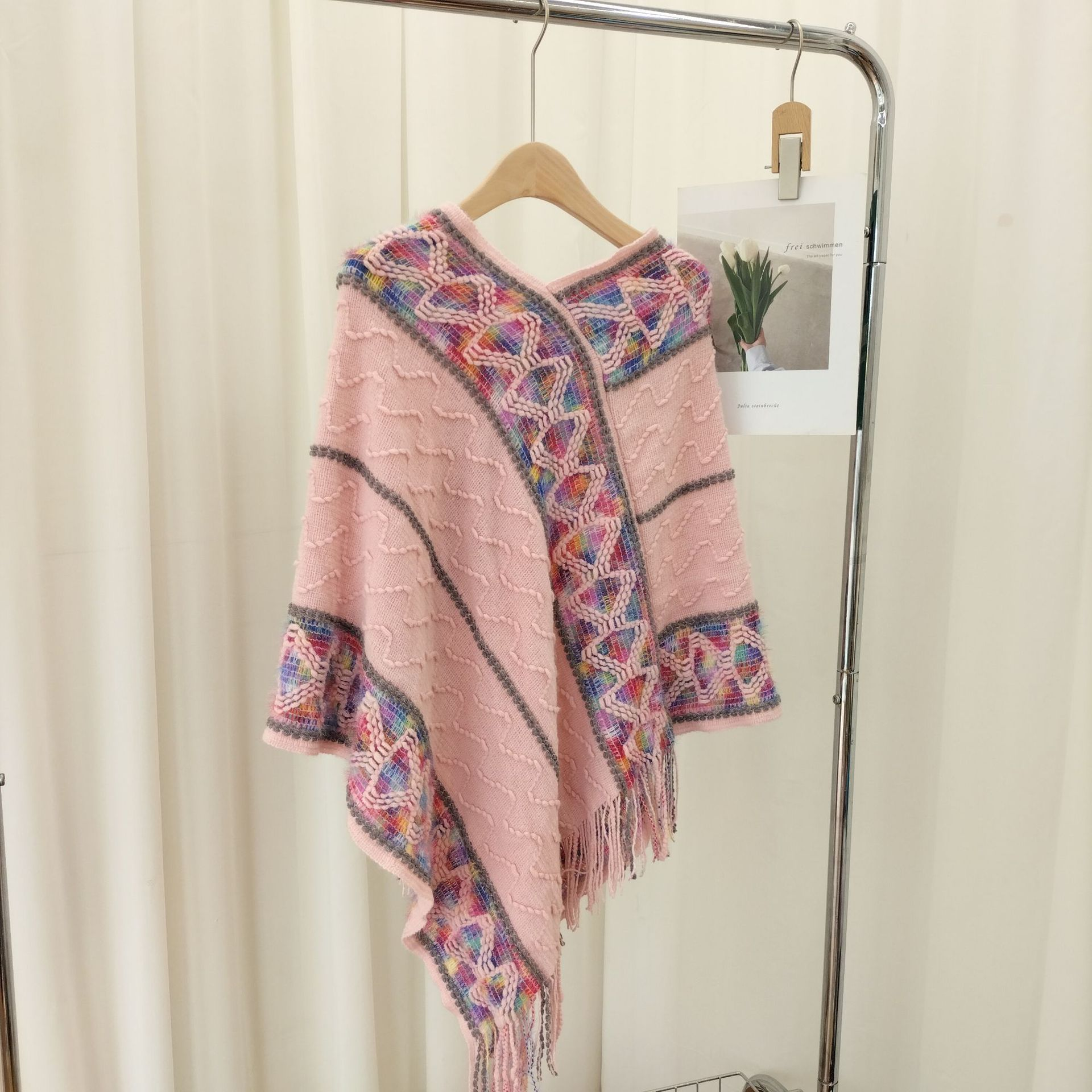 12分鐘前流蘇套頭針織披肩,民族風披肩波浪彩色百搭款 - 最划算!【多款式一起入!】3入組-NT$1590