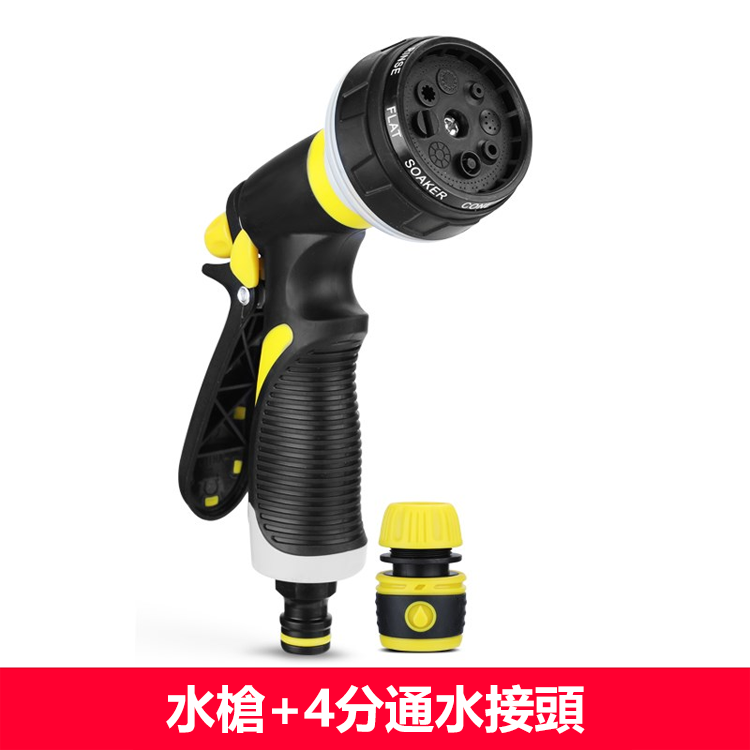 7分鐘前八檔出水模式,直噴/霧化,水壓超強 洗車/澆花/澆菜,一槍多用,清潔無憂! - 水槍+4分通水接頭